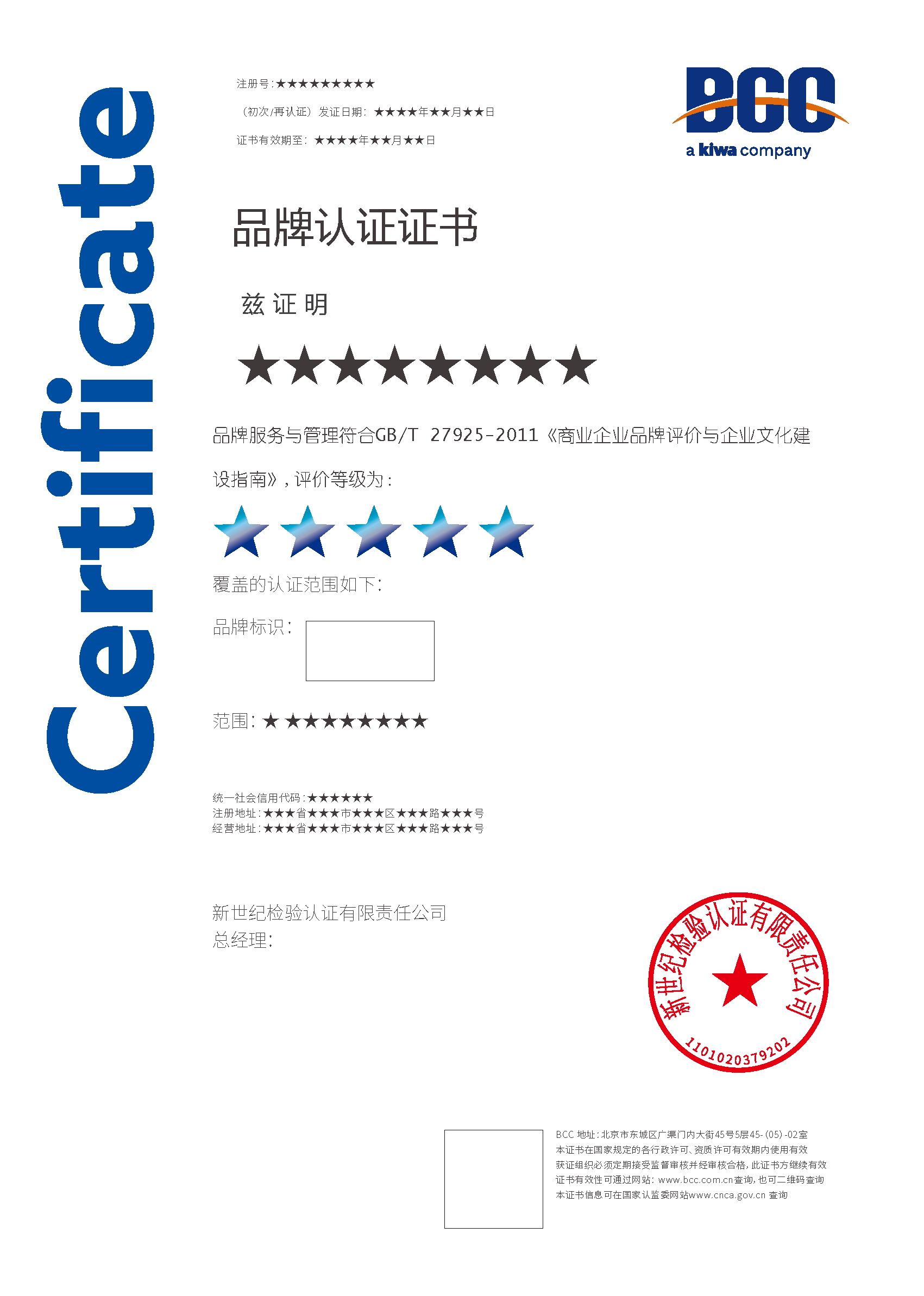 本頁涉及的認(rèn)證服務(wù)中均有對(duì)應(yīng)的《認(rèn)證實(shí)施規(guī)則》,BCC擁有其最終解釋權(quán)。任何組織及個(gè)人未經(jīng)BCC許可,不得以任何形式全部或部分使用(法律要求除外)認(rèn)證相關(guān)信息。如需獲取相關(guān)實(shí)施規(guī)則請(qǐng)用以下方式聯(lián)系獲取:電話:010-58579316 郵箱:fwjs@kiwa.cn
