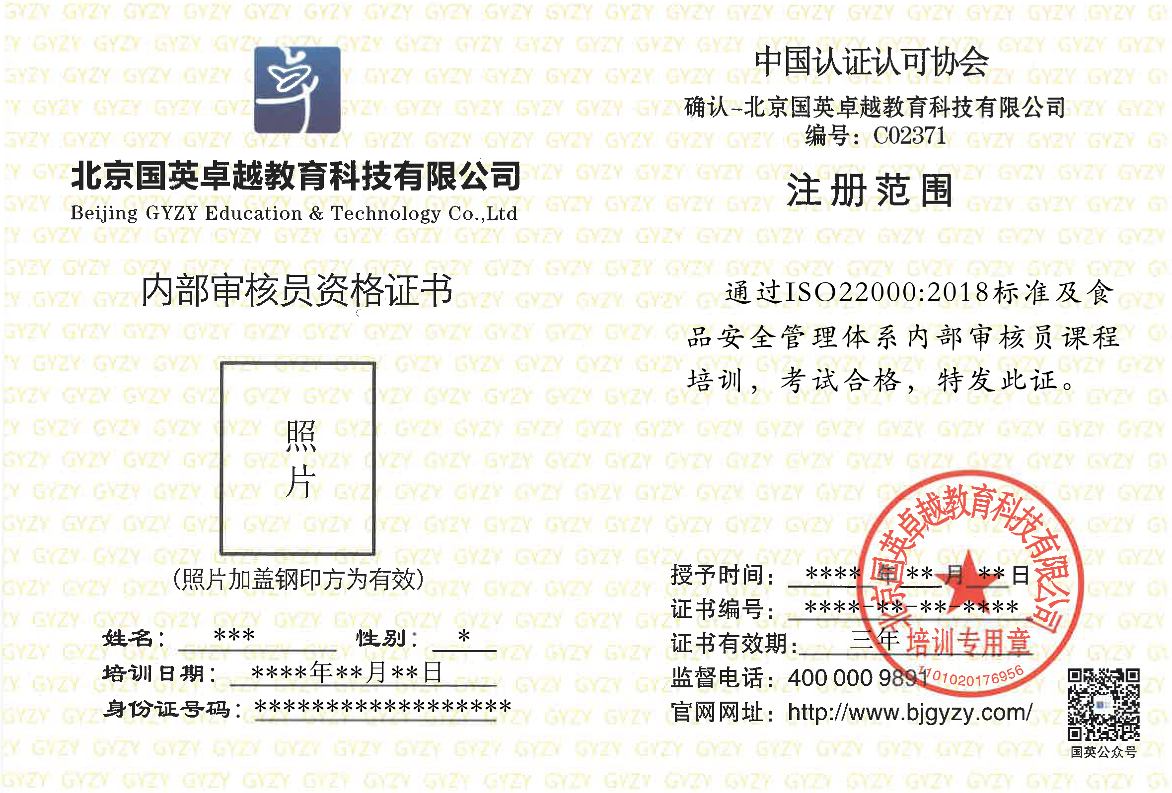 | 內(nèi)審員證書 |