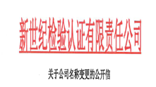 根據(jù)公司戰(zhàn)略發(fā)展的需要,經(jīng)市場監(jiān)督管理局核準,自2019年10月22日起,公司名稱由“新世紀檢驗認證股份有限公司”正式變更為“新世紀檢驗認證有限責任公司”。閱讀更多 -
