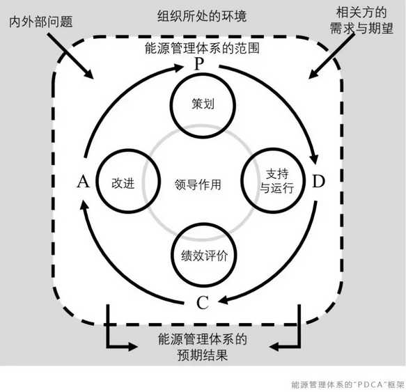 ISO 50001提供了一個(gè)方法框架,用于開(kāi)發(fā)有效的能源管理系統(tǒng),與其他ISO管理體系標(biāo)準(zhǔn)一樣,能源管理體系遵循“計(jì)劃-執(zhí)行-檢查-行動(dòng)”(PDCA)流程,以實(shí)現(xiàn)持續(xù)改進(jìn)。