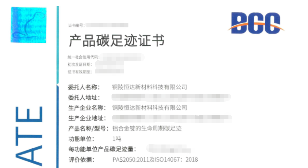 健全綠色發(fā)展,Kiwa BCC為銅陵恒達頒發(fā)產品碳足跡核查證書