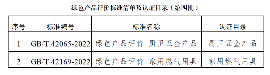 關(guān)于發(fā)布綠色產(chǎn)品評價標準清單及認證目錄(第四批)的公告